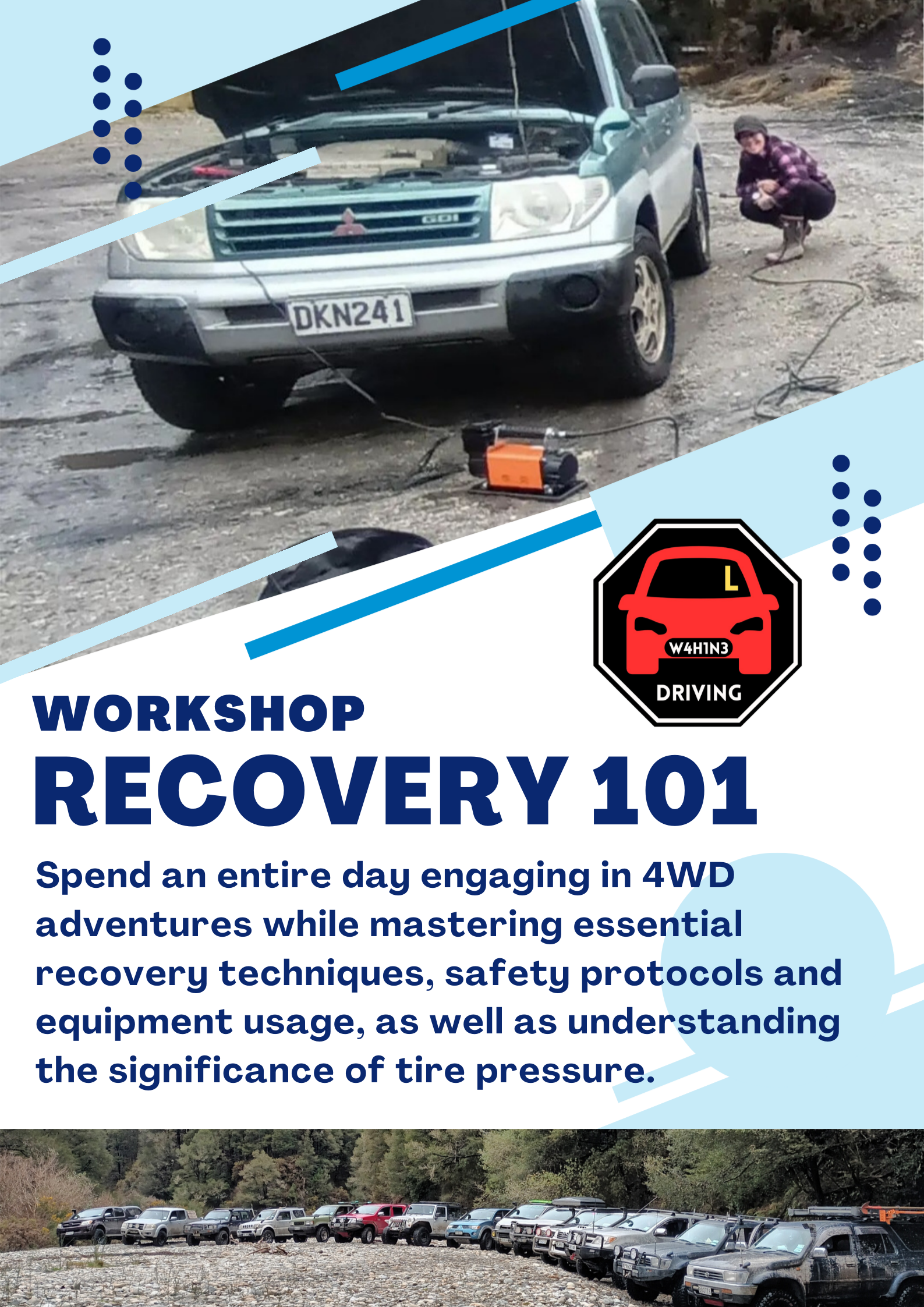 Spend an entire day engaging in 4WD adventures while mastering essential recovery techniques, safety protocols and equipment usage, as well as understanding the significance of tire pressures.
